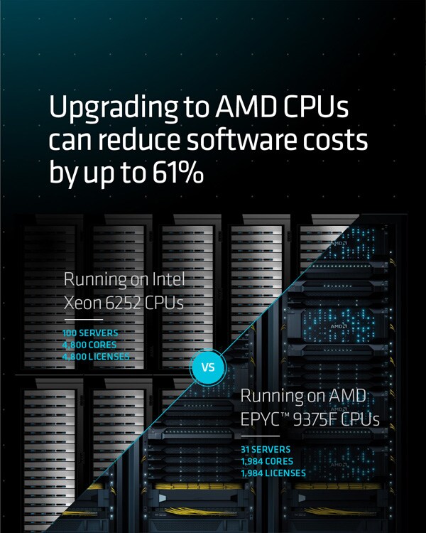 Today’s IT managers face immense pressure for a variety of reasons: they need to activate new revenue streams, develop strategies to support changing workforce requirements, and integrate new capabilities to improve efficiency within the business. While upgrading to new servers can alleviate these issues, cost is often perceived by many as a barrier.AMD EPYC™ 5th generation processors boost performance, consolidate servers, and optimize software licensing costs. Read this blog to learn how you could recoup your investment in as little as two months.
