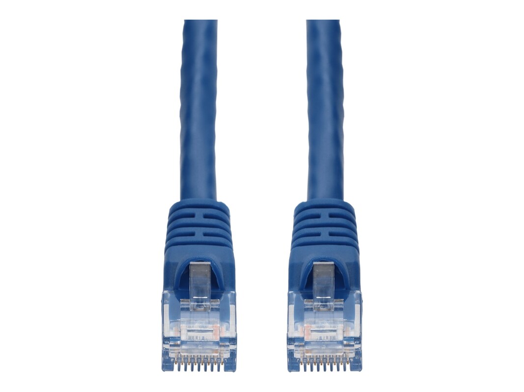 This is a RJ-45 (male) to RJ-45 (male) blue straight unshielded twisted pair PVC copper slim patch cable. The Cat6 cable is a standardized twisted pair cable for Ethernet or other physical network layers. Cat6 standards specify performance of up to 250MHz. This PVC jacketed cable is best suited for LANs or SANs, and is recommended for connection between fiber patch panels, hubs, switches, media converters and routers. Unshielded twisted pair patch cables are perfect for data centers, LANs and other short range network connections.