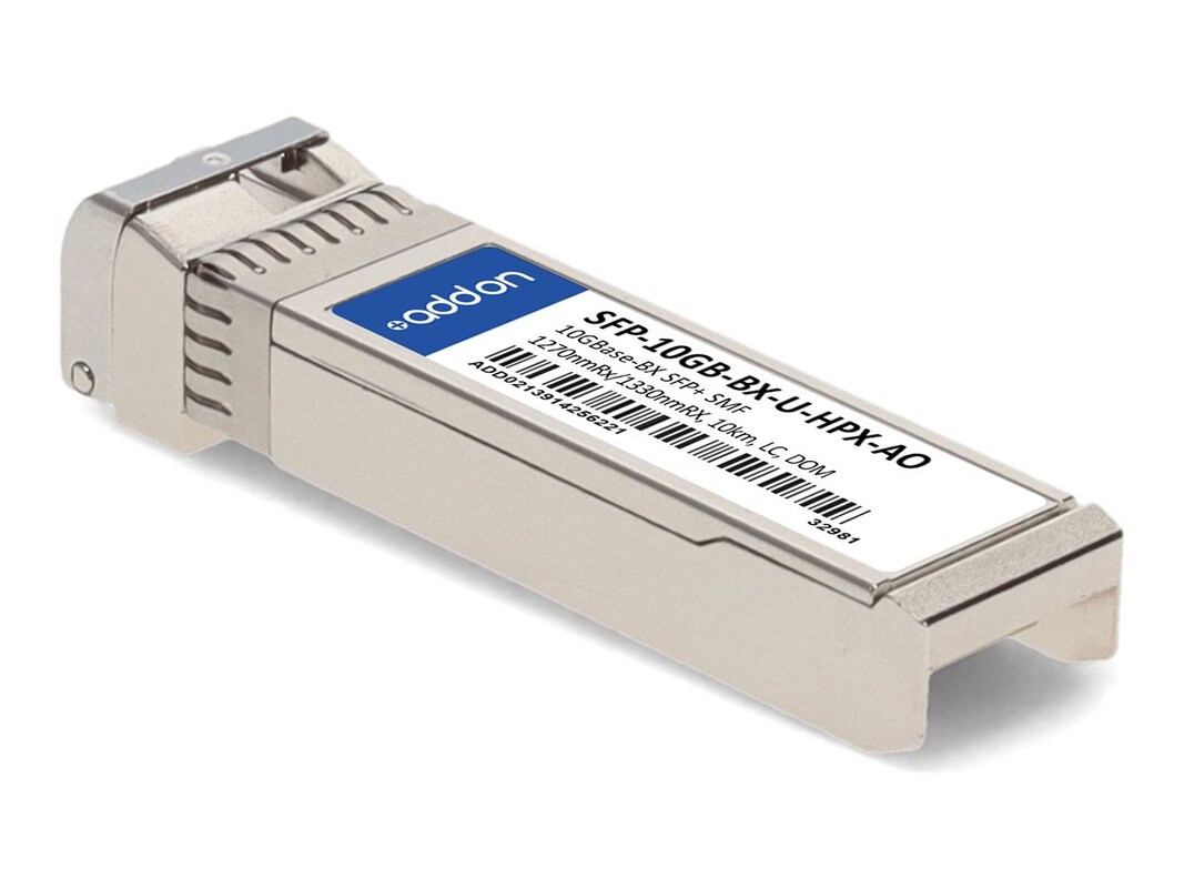 This HP compatible SFP+ transceiver provides 10GBase-BX throughput up to 10km over single-mode fiber (SMF) using a wavelength of 1270nmTx/1330nmRx via an LC connector. This bidirectional unit must be used with another transceiver or network appliance of complementing wavelengths. It is guaranteed to be 100% compatible with the equivalent HP transceiver. This easy to install, hot swappable transceiver has been programmed, uniquely serialized and data-traffic and application tested to ensure that it will initialize and perform identically. Digital optical monitoring (DOM) support is also present to allow access to real-time operating parameters.