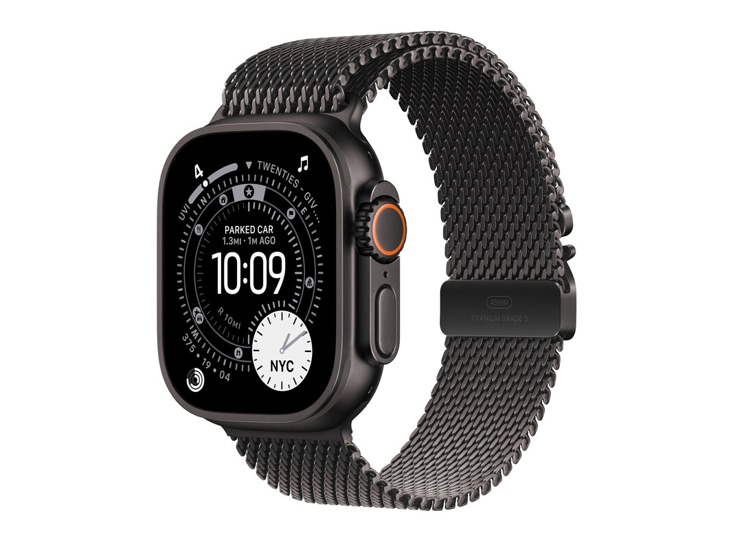 Apple Watch Ultra 3, GPS + Cellular, 49mm, Black Titanium Case with Black Titanium Milanese Loop - Large