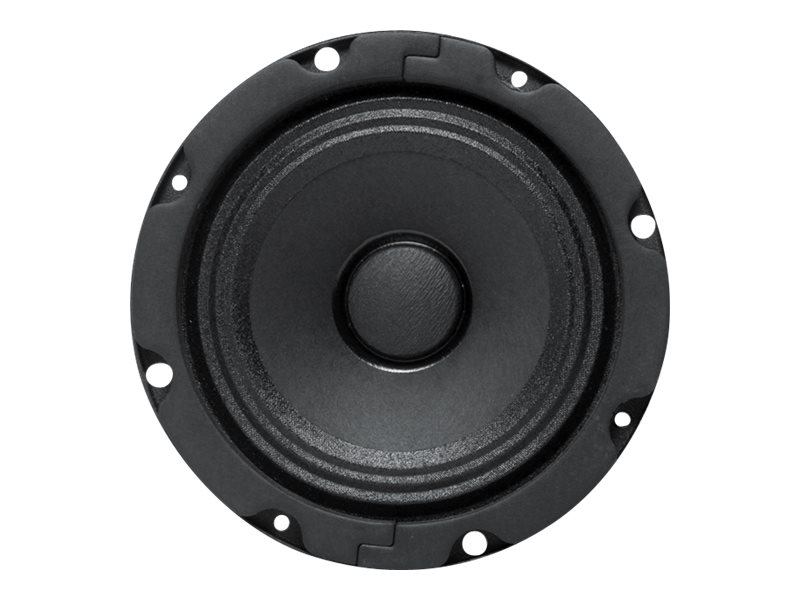 This compact, full-range 4" FC104T In-Ceiling Speaker with 8-Watt 70V Transformer is equipped with a damped, high-compliance cone which provides excellent low frequency reproduction and smooth extended response. It also offers a wide dispersion angle which reduces the number of loudspeakers necessary to achieve total coverage in low-level distribution systems. The unit contains a 10 oz (283 g) ceramic magnet with a flux density of 10,500 gauss. A dual-purpose bracket securely mounts the transformer in a low profile position and enables torsion spring mounting found on many Atlas Sound baffles.
