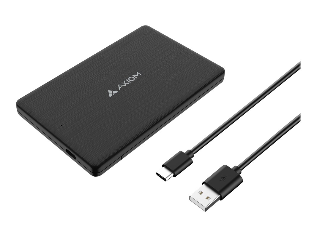 This Axiom 2.5" USB-C 3.1 Gen2 External Portable Hard Drive Enclosure offers a portable storage solution in sleek, lightweight casing for easy data management whether you are at home, in the office or on the go. This external hard drive enclosures feature universal plug-and-play connectivity via USB 3.1 with a combined data and power cable so you can address your storage and backup demands anytime, anywhere without the hassle of installation. Just add the drive of your choice and it's ready to go.