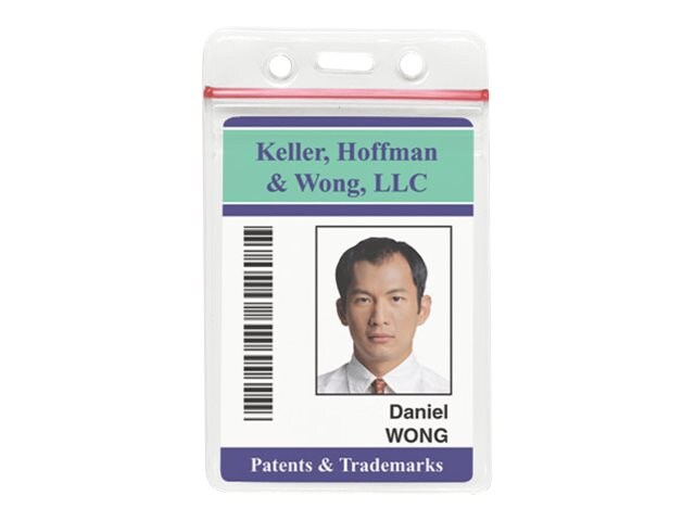 Keep out dirt and moisture with the clear vinyl badge holder with red resealable closure and slot/chain holes.