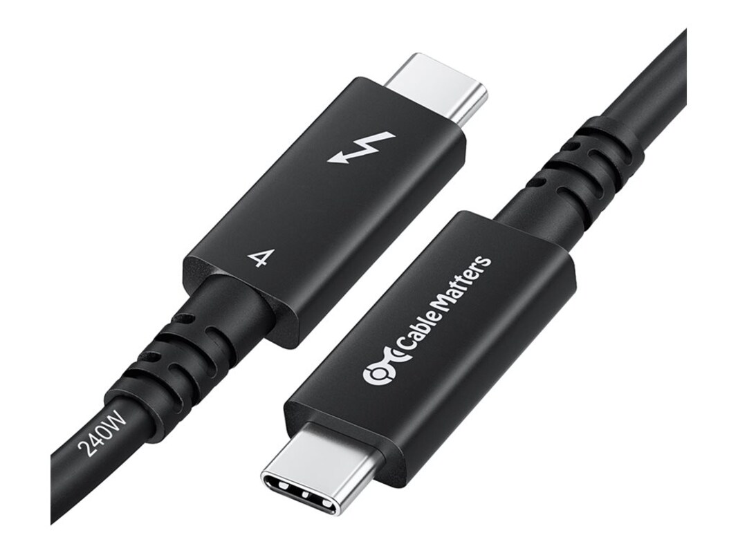 The Cable Matters Thunderbolt cable ensures performance connectivity for various devices with a maximum resolution of 7680 x 4320 at 60Hz, suitable for clear and vibrant displays. It supports HDR and features a data transfer rate of 40 Gbps, assisting in data-heavy applications. With capabilities including Display Stream Compression and support for 4K at 240Hz, this cable allows for dual display setups, enhancing multitasking and productivity.