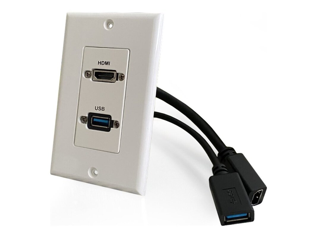 The Comprehensive wall mount plate offers a reliable solution for managing your HDMI and USB connections with ease. Featuring a sleek design and durable construction, it includes a 15.2 cm HDMI pigtail cable that supports up to 4K 60Hz resolution, ensuring clear, high-quality video output. This wall plate is made from metal and ABS housing, providing functionality and aesthetics for your home or office layout. Designed to withstand temperatures from 0 °C to 70 °C and humidity levels between 5% and 95%, it delivers consistent performance in various environments. The package includes mounting screws for easy installation, making it an ideal choice for those looking to streamline their multimedia connections.
