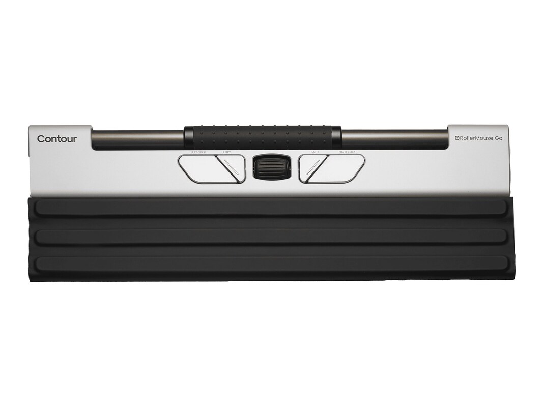 RollerMouse Go is a compact and wireless version of Contour's well-known centered mouse. Using the roller bar, you automatically vary your working position by using both the right and left hand. You avoid the movements that occur with the use of classic one-handed mice, which increase the risk of carpal tunnel syndrome. Whether you work from home, is a traveling consultant, or employee at a free-seating workplace, RollerMouse Go can prevent and relieve tension and pain in the body. Despite its size, RollerMouse Go has the same functions as other RollerMouse models. The five programmable buttons and the roller bar with built-in click function contribute to improving both ergonomics and well-being.