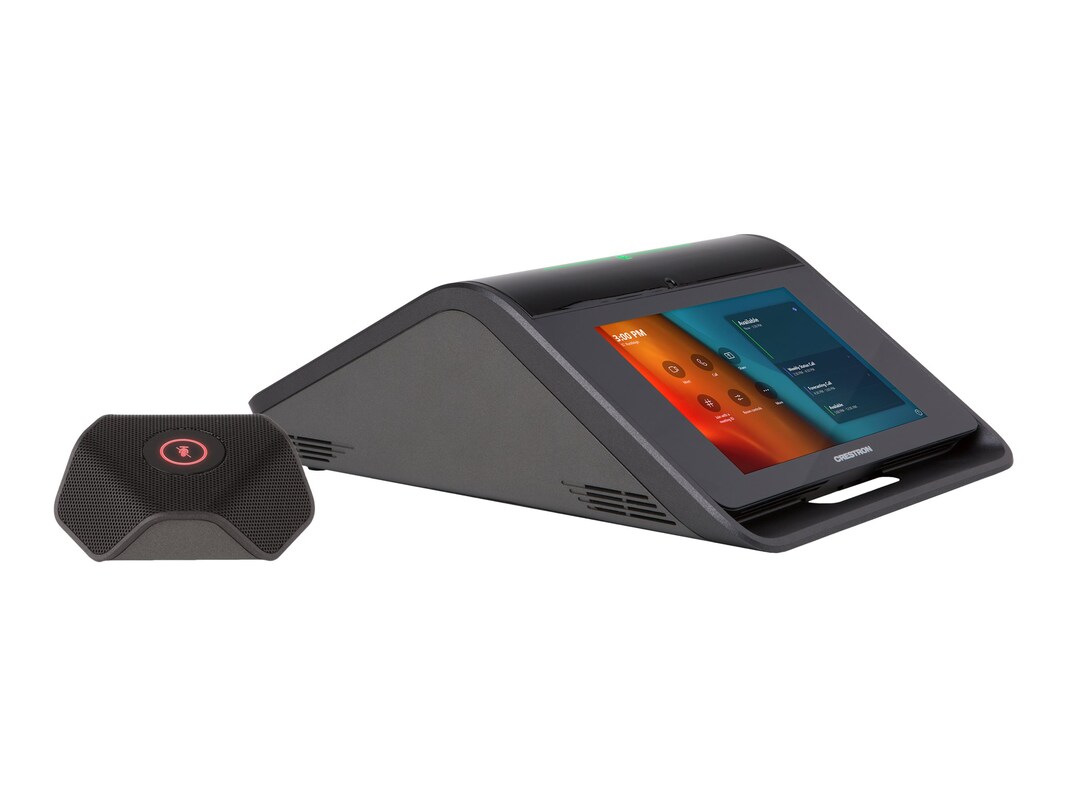 With a large 7" HD color touch screen and an integrated AEC-enabled USB speakerphone that affords full-duplex wideband audio performance, the Crestron Flex Tabletop Conference device provides a superior conferencing and collaboration experience for meeting rooms, huddle spaces, and executive offices. The conference device also offers optional control of room lighting, shades, thermostats, and other equipment. To simplify installation, the UC Bracket Assembly provides preassembled components on one ready-to-mount bracket. The assembly can be mounted on a wall, or it can be attached to the rear of the display device. Crestron's direct connection method further simplifies installation with a single connection from the Crestron Flex tabletop conference device to the UC Bracket Assembly.
