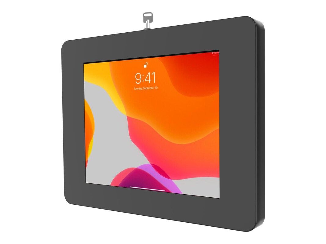 This durable, easy to use security enclosure keeps your tablet protected from theft and easily accessible in offices, classrooms, restaurants, and more. The durable metal enclosure protects your tablet from theft with a powerful lock and key security system, mounting flush against the wall with a set of included hardware. The enclosure can be mounted either vertically or horizontally and is designed to allow interior cable routing so that your device remains charged while in use. The enclosure's mounting holes are in a standard 75mm x 75mm VESA pattern, allowing easy interfacing with VESA arms and other equipment.
