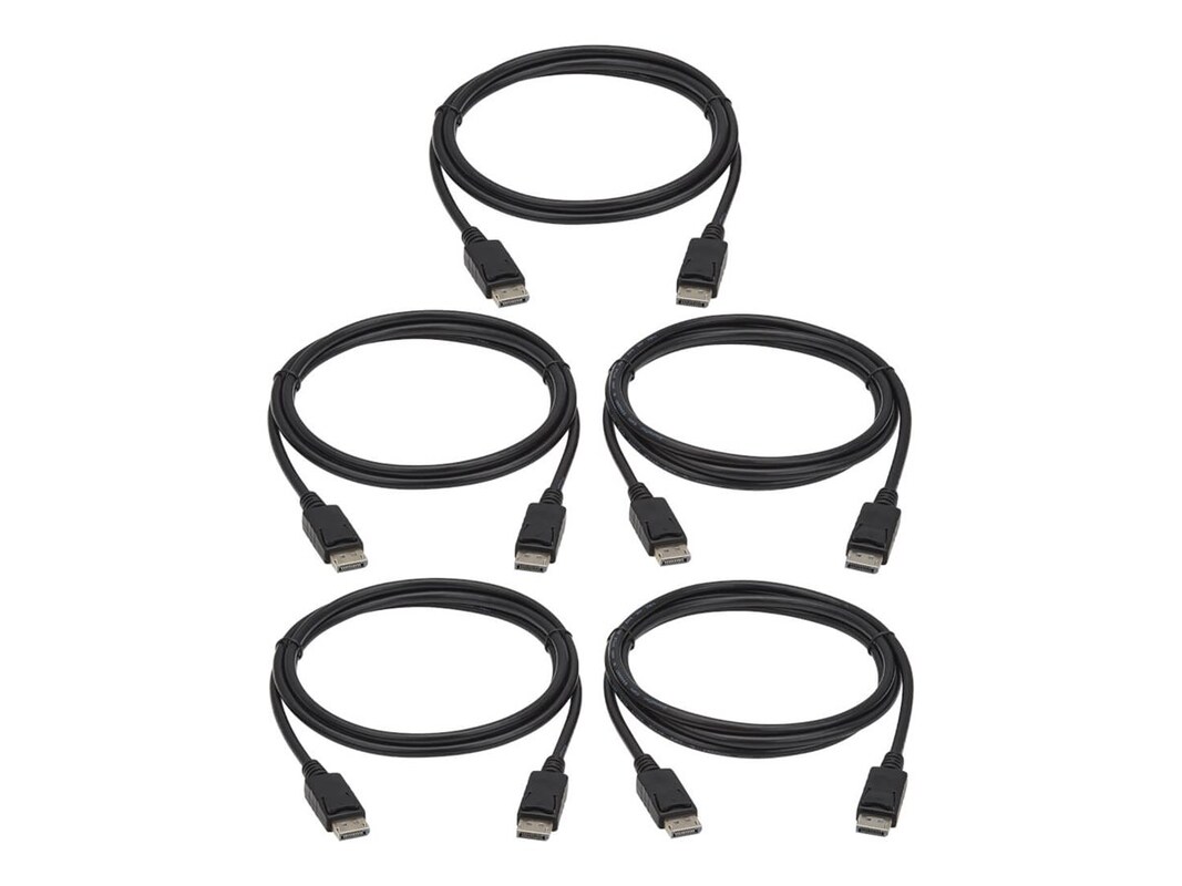 This five-pack of 4K DisplayPort cables (M/M) securely connects 4K-compatible source and display devices in your audio/video application. The P580-006-5PK is compatible with all DisplayPort devices, including 4K Blu-ray players, gaming consoles, laptops, media servers, satellite/cable TV boxes and tablets, as well as HDTVs, monitors, projectors and audio receivers. Plus, these five DisplayPort cables are backward compatible with your existing HDMI devices.