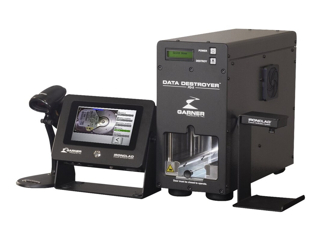 The NSA-listed PD-5 hard drive destroyer is IRONCLAD capable. Specifically designed to destroy hard drives and solid-state media in an office environment, the PD-5 IRONCLAD provides digital witness destruction verification by imaging, tracking, and documenting the destroyed media for audit and archival purposes.