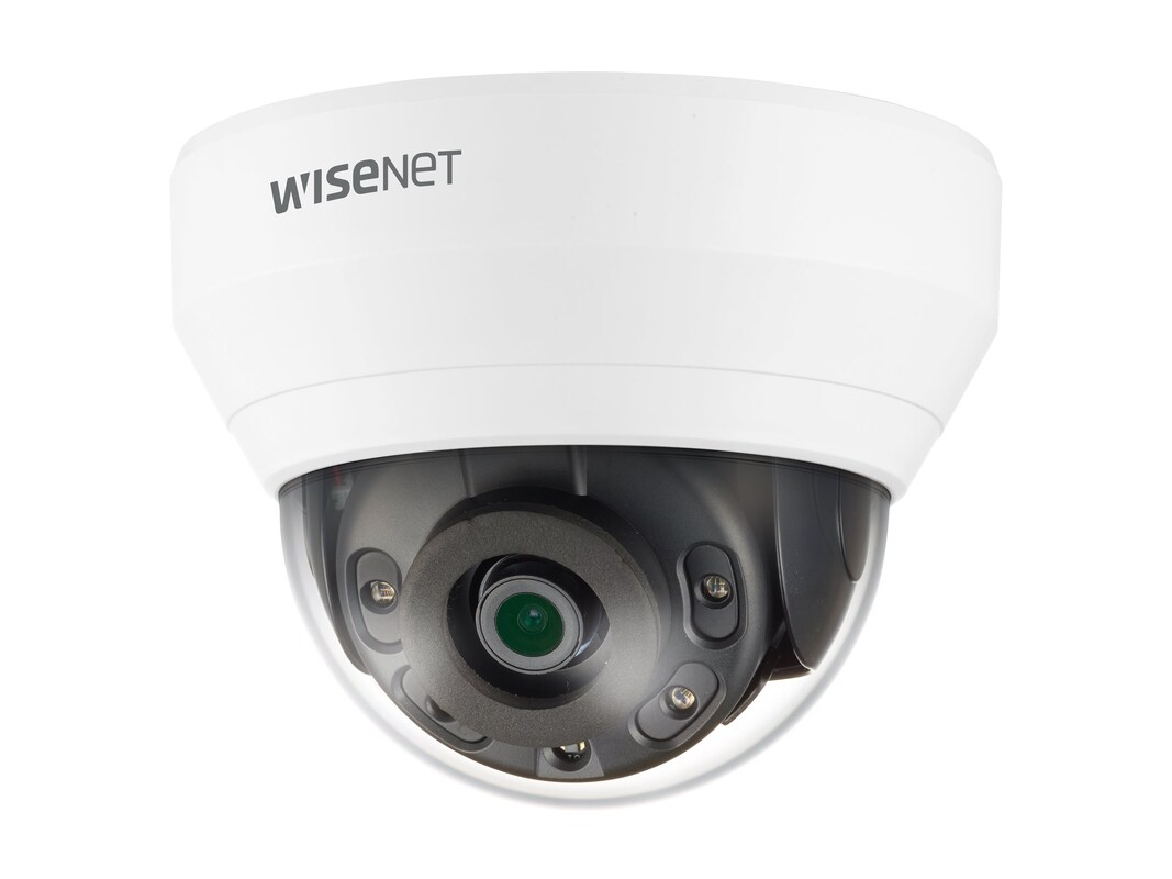 The Hanwha Vision WiseNet Q QND-7032R network surveillance camera is engineered to deliver superior image clarity and advanced security features in a wide range of environmental conditions. With its robust design, the camera operates flawlessly in temperatures ranging from -10°C to 55°C and humidity levels up to 95% RH, making it an ideal choice for diverse settings. The camera's high-quality imaging is powered by a 1/3" CMOS sensor, capturing detailed 2560 x 1440 resolution footage. Enhanced night vision capabilities, provided by infrared LEDs, ensure clear video capture up to 20 m in complete darkness, while the built-in microphone adds an additional layer of surveillance by capturing sound. Advanced features such as Motion Detection, Directional Detection, and Tamper-detection offer heightened security, and support for multiple network protocols ensures easy integration into existing systems. Compliance with standards such as CE, FCC, and UL, along with a durable dome form factor, ensures both reliability and longevity. Whether for business or residential use, the Hanwha Vision WiseNet Q QND-7032R offers a comprehensive surveillance solution that meets the demands of modern security environments.