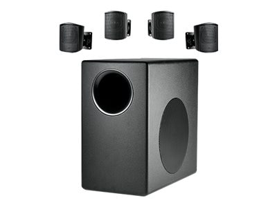The HARMAN Control 50 Series Packaged Surface-Mount Subwoofer-Satellite Loudspeaker System provides high-fidelity sound in restaurants, retail stores, music cafes, health clubs, theme bars, leisure venues, or any location where full-range background music is required. It contains four Control 52 satellite speakers and one Control 50S/T subwoofer as an easy predesigned system.