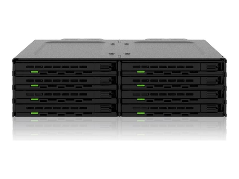 The ICY Dock ExpressCage MB038SP-B offers an efficient solution for organizing and accessing multiple 2.5-inch storage drives. Built with a solid combination of plastic and metal, this external storage drive cage supports up to 8 hot-swappable drives with a SATA 6 Gb/s interface. Its latch lock mechanism ensures that drives are securely positioned while maintaining easy access. With dual cooling fans and Active Power Technology (APT), the ExpressCage keeps your drives cool and operational within a temperature range of 0 °C to 60 °C, making it reliable even in demanding environments.