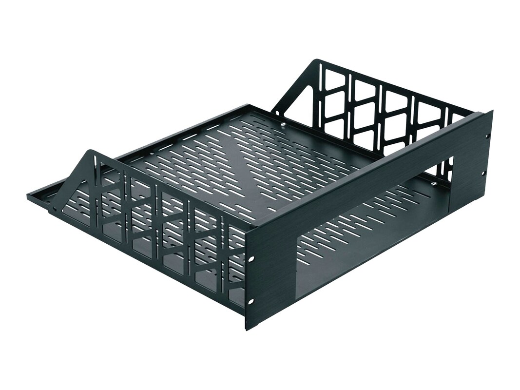 With the innovative RSH custom rackmounts, virtually any component can be installed in a standard 19" enclosure without modification. Custom cut to provide a perfect opening for the face of the component that is being mounted, each RSH unit provides a neatly-trimmed installation with a perfect fit and no gaps. With accurate details on over 9,500 components in our measured unit database, chances are we have the component needed on file. Unit assembles easily in minutes and includes rear brackets to prevent the mounted component from sliding back. Fully ventilated ears and bottom promote cooling. Depending on the needs of the installation, the units can be ordered with a black textured finish (model RSH4S) or a black brushed and anodized finish (model RSH4A). Bottom depths are automatically provided in 11-1/2", 14", 15-1/2", 17-1/2", or 20-1/2" styles. Custom rackmounts will accept any component up to 17-3/4" wide. Individual custom faces (less rack ears and shelf bottom) are also available in a black textured finish (model SFACE) or a black brushed and anodized finish (model AFACE). LCD rackmounts also available to mount most LCD monitors with up to a 17" screen size or with a maximum width of 17-3/8". NOTE: custom rackshelf height is specified at the factory based on physical restrictions. Custom cut to provide a perfect opening in the face Comes with an appropriate-sized vented rackshelf.