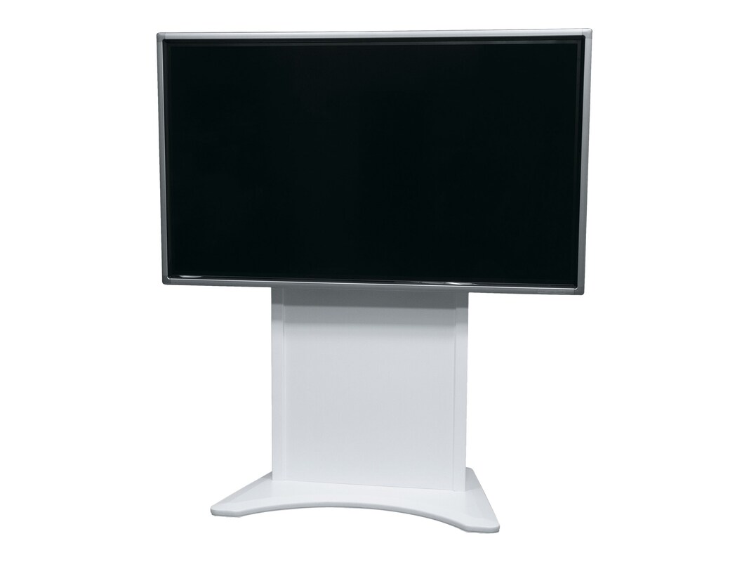 FlexView single display cart, static with levelers, vesa 800 mounting pattern, white finish Certified for strength and safety. Designed with flexibility for mounting displays and other system components Engineered with the Lever Lock ; system for small device mounting. Simple and quick maintenance with easy-access key locked doors Base designed for unimpeded, up close display interaction Lowest profile display mount in the industry Mounts larger displays, including most 90" screens with VESA 800 mounting or smaller Accessory basket inside for storage of remotes and small objects.