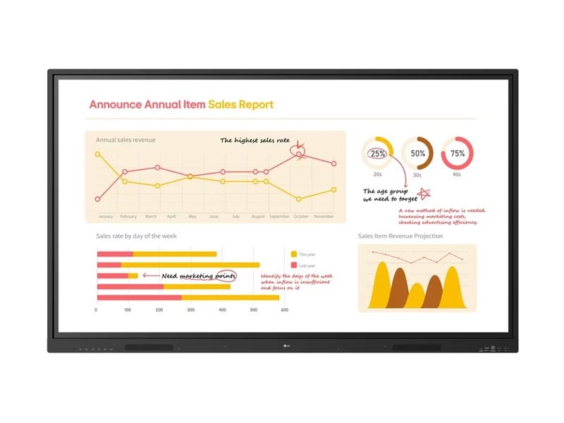 Equipped with an audio system that consists of 2 built-in speakers delivering 32 watts of total output power, audio feedback is robust and clear. Connectivity options such as HDMI, USB, and LAN inputs, along with support for Open Pluggable Standard (OPS), provide flexibility for various setups. The Local Key Operation and LG CreateBoard Share features further enhance usability, making it convenient to share and operate presentations. Designed for longevity, the display boasts a backlight life of 50,000 hours.