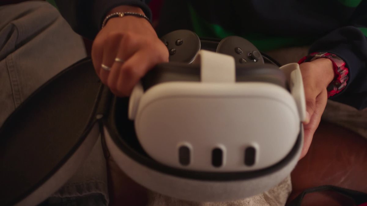 Enjoy your Meta Quest on the go with a hard protective case that takes up less space in your bag, so you can experience mixed reality anywhere. The thoughtful design features an outer felt shell, soft hand strap and contoured inner compartments to keep your gear organized and secure. It's designed to fit your Quest 3/3S, two Touch Plus Controllers with lanyards or Active Straps, a charging cable and adapter. With its lightweight construction, zipper opening and rounded profile, this premium Meta accessory makes it easier than ever to access your Meta Quest 3/3S and accessories wherever you are.