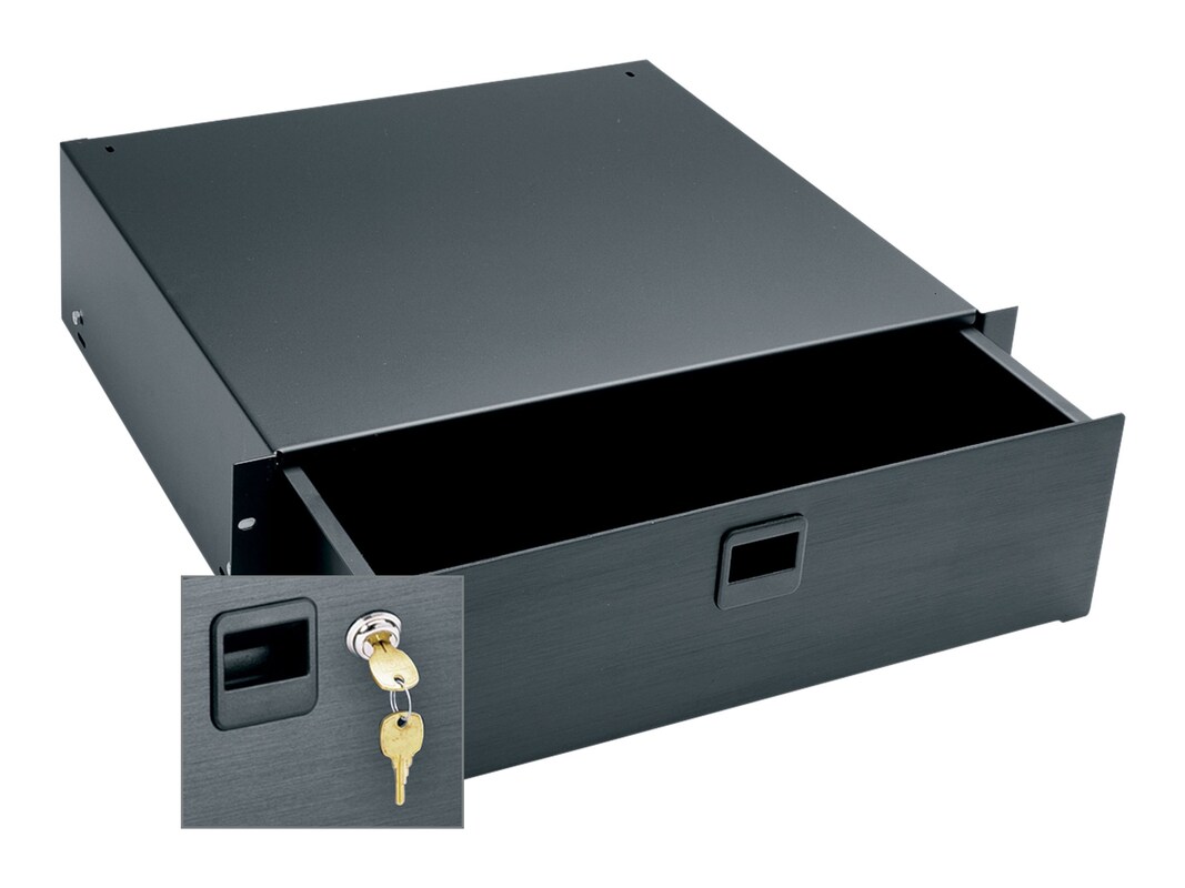 Fully enclosed with inside dimensions measuring 15 7/8" wide by 14 1/2" deep, the D series drawer feature spring-loaded latches and rugged, straightforward construction.