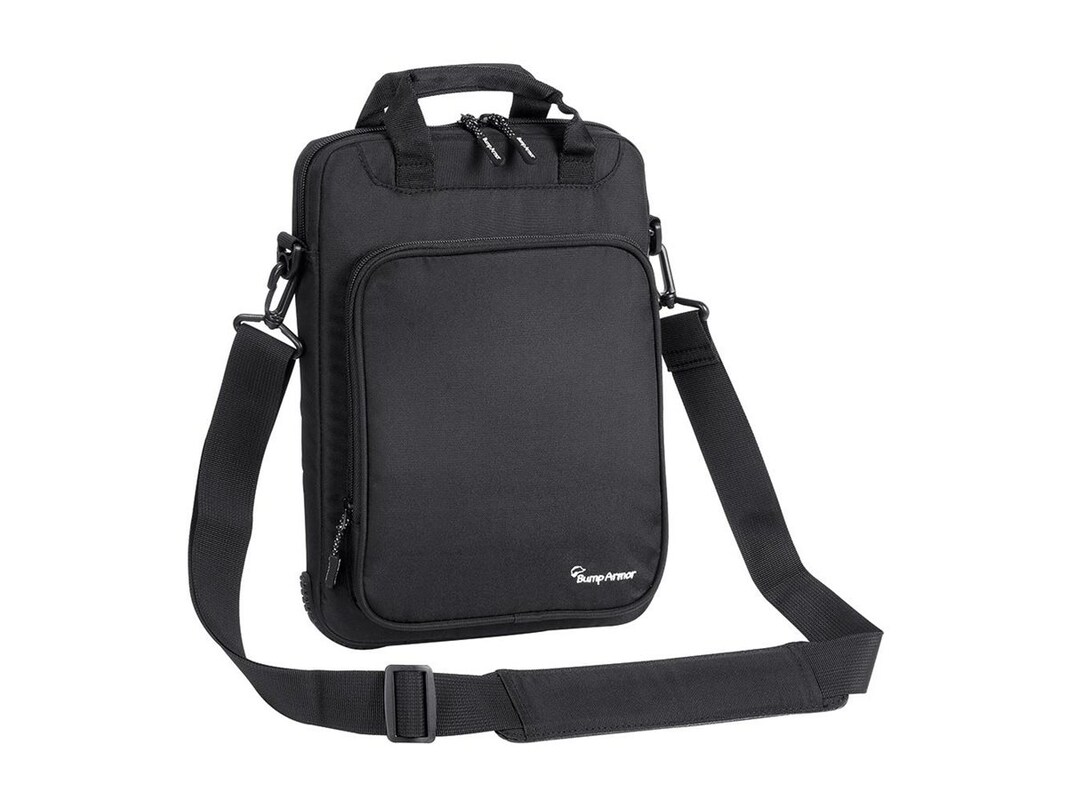 The Bump Armor Tech-Pro case is a top-loading messenger style bag built with high density foam and reinforced corrugated plastic siding providing R30 crush protection ensuring the ultimate protection. Rip-stop nylon exterior with water-repellant coating on the exterior offers an added layer of defense. Offers an exterior pocket for power cords & accessories and it is built with long-lasting commercial quality zippers. Double stitched padded handles and an adjustable, removable padded shoulder strap offer carrying options while compact enough to slide in and out of a backpack with ease. Built-in ID window for easy identification.