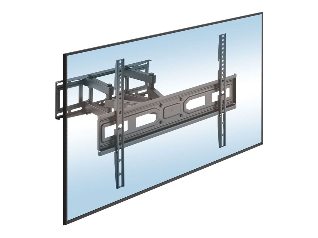 The Mount-It! MI-4112 full-motion mounting kit offers support for your AV needs, accommodating curved and flat panel displays ranging from 37 to 80 inches. With a robust design and a maximum load capacity of 40 kg, this wall mount ensures safety and stability for your setup. It features integrated cable management, helping to keep your cords organized and out of sight for a clean look in your space. Adjustments allow for level, height, tilt, and swivel capabilities, ensuring your screen is positioned according to your preference, with tilt angles ranging from -15° to 3° and swivel angles of -60° to 60° for optimal viewing. The bubble level integrated into the design ensures easy and accurate installation, making it a practical choice for both home and office environments.
