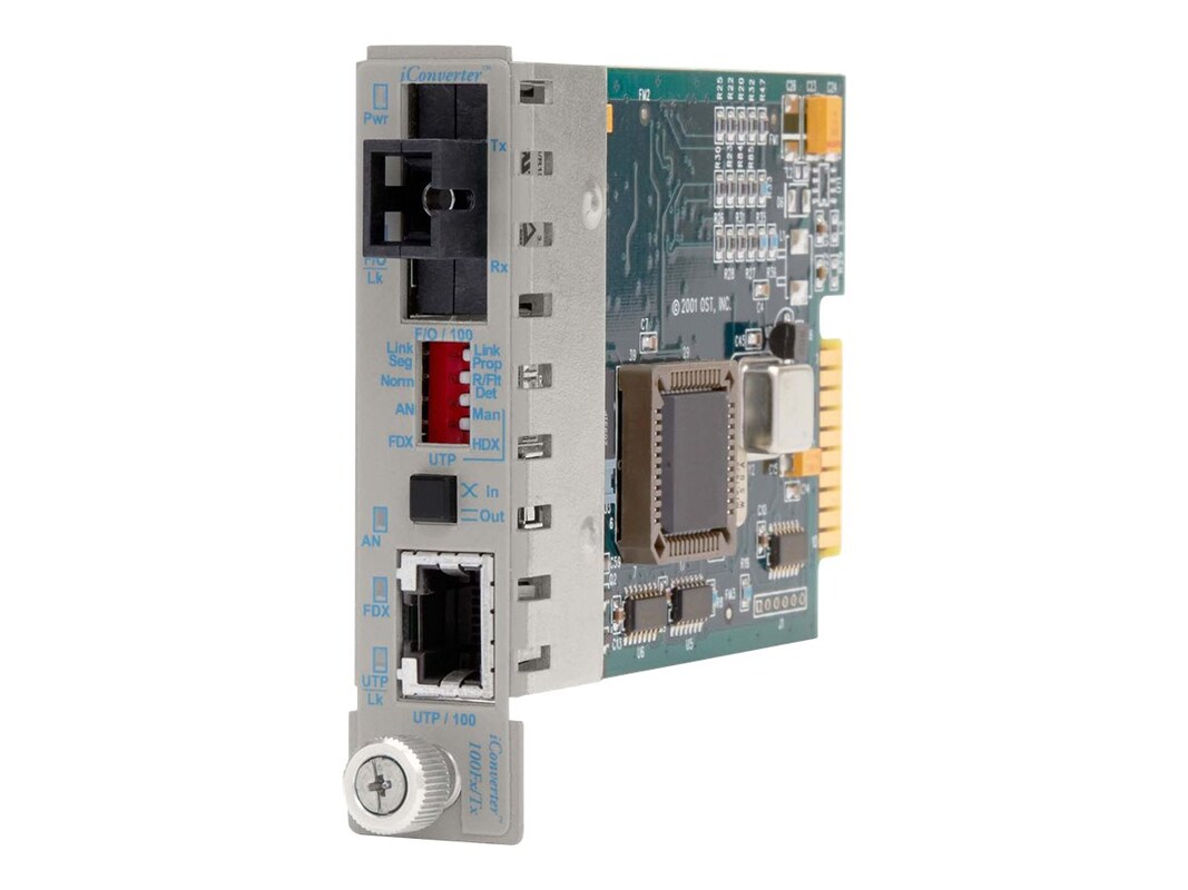 The iConverter 100Fx/Tx manageable media converter is a member of the modular iConverter product family. It provides 100Base-Tx UTP to 100Base-Fx Fiber conversion.