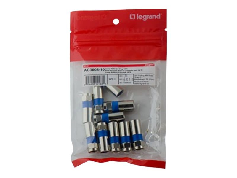 Waterresistant F compression connector for RG6/U quad shield coax used by many satellite and cable TV service providers.
