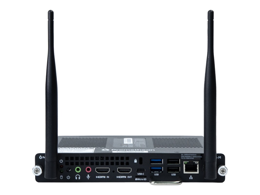 The Promethean OPS-M4 redefines efficiency and connectivity in the digital signage domain. This slot-in digital signage player is not just a device but a comprehensive solution that brings powerful performance, extensive connectivity, and advanced digital media capabilities to the forefront. Powered by an Intel Core i7 processor and equipped with 16 GB of DDR4 SDRAM, it ensures smooth and responsive operation across applications. Storage is ample and swift with a 256 GB SSD, accommodating a wide array of digital content with ease.