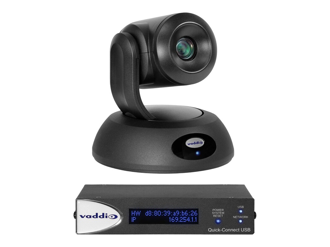 RoboSHOT Elite Series cameras are professional A/V presentation cameras. RoboSHOT 12E QUSB System delivers high-quality HD video, power and control over two Cat. 5 cables up to 100'. Based on UVC USB 2.0 standards, Quick-Connect USB outputs include USB 2.0, IP control and streaming (RTSP or HLS), component HD (YPbPr) and HDMI. Key Features: 12x Optical Zoom OR 30x Zoom 1/2.5-type Exmor R CMOS sensor 70.2° horizontal field of view Power/Video/Control on two Cat-5's up to 100' (30.5m) for RoboSHOT Elite series cameras HDMI, YPbPr, and USB 2.0 or H.264 Streaming Outputs Introducing the RoboSHOT Elite Series – Vaddio's next generation of professional cameras. Designed with an 1/2.5-type Exmor R CMOS sensor, RoboSHOT Elite cameras deliver striking, high-definition video image quality. Cutting-edge image signal processing (ISP) results in better light-gathering capabilities, incredible contrast and sharp 1080p/60 video, even in dim lighting conditions. RoboSHOT Elite cameras are equipped with enhanced wide dynamic range, which can help correct for environments with uneven lighting by making darker or over-bright areas in video more visible and detailed. A web-based user interface gives the user camera control with a web browser from anywhere in the world over the IP network. Perfect for remote management, network operating centers and overall IT control. The Elite Series of RoboSHOT PTZ cameras is equipped with Vaddio's industry-leading Tri-Synchronous Motion technology allowing all three axes of the camera to move simultaneously for ultra-smooth, natural camera motion. The RoboSHOT 12E cameras are recommended for small to medium spaces such as conference rooms, training rooms, and classrooms that require a wide angle of view. When paired with the Quick-Connect TM USB Interface, the outputs include USB 2.0 (UVC) Streaming or IP (H.264) Streaming in RTSP or HLS formats with IP control and simultaneous HDMI and HD analog component (YPbPr) video outputs. This Package Includes: RoboSHOT 12E camera (black or white) Thin Profile Wall Mount (black or white) with mounting hardware and installation manual Vaddio IR Remote Commander Quick-Connect USB Interface (QUSB) 24V power supply with AC cord set(s) Quick-Start Guide 4 qty rubber feet for bottom of QUSB unit if not rack-mounted 6' (1.83m) USB 2.0 cable, type A to B.