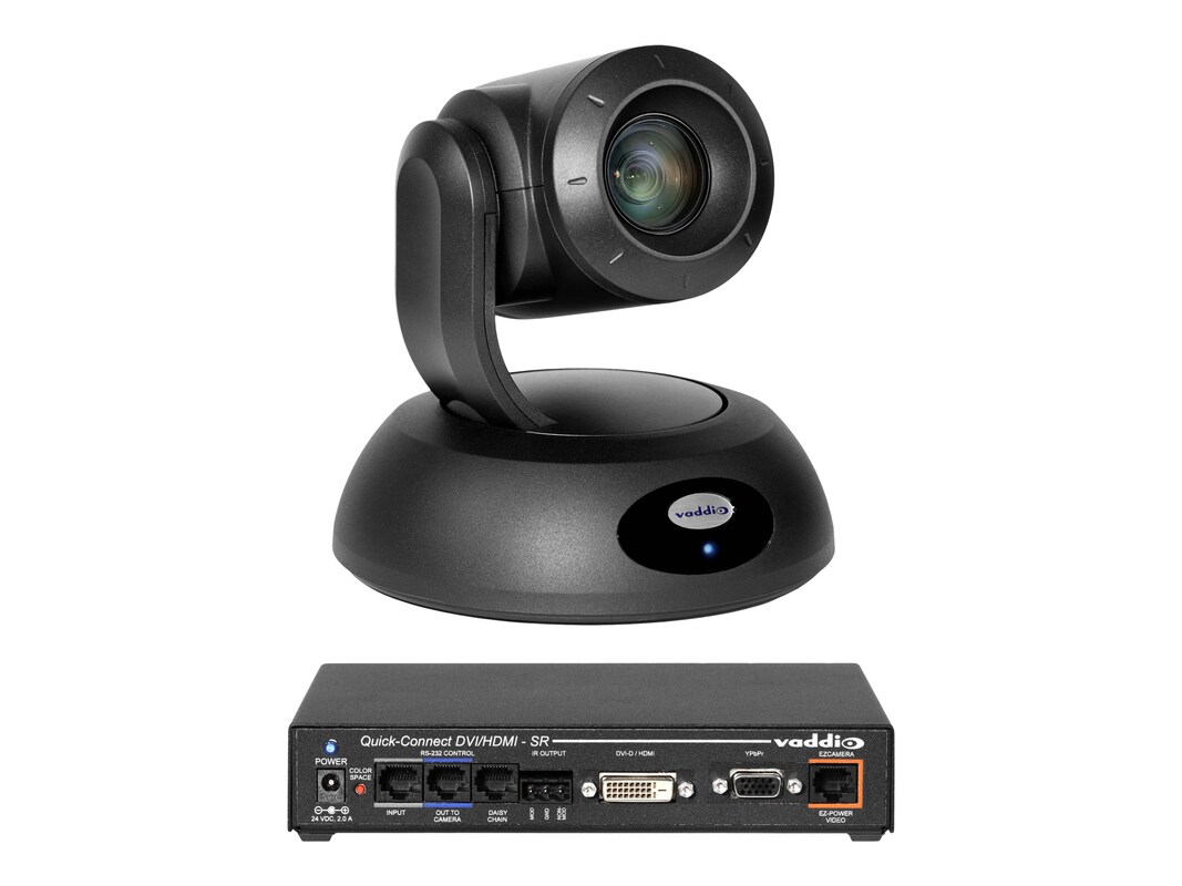 The RoboSHOT 30 QDVI System delivers high-quality HD video, power and control over two Cat. 5 cables up to 100'. Outputs include simultaneous HDMI, YPbPr and HSDS and support both drop framed and non-drop framed HD video resolutions. The RoboSHOT 30 HD PTZ Camera is a professional quality PTZ camera with high quality imaging, fine detail and exceptional color reproduction. This camera offers integrators, dealers and end users with an incredible improvement over other conferencing cameras available today.
