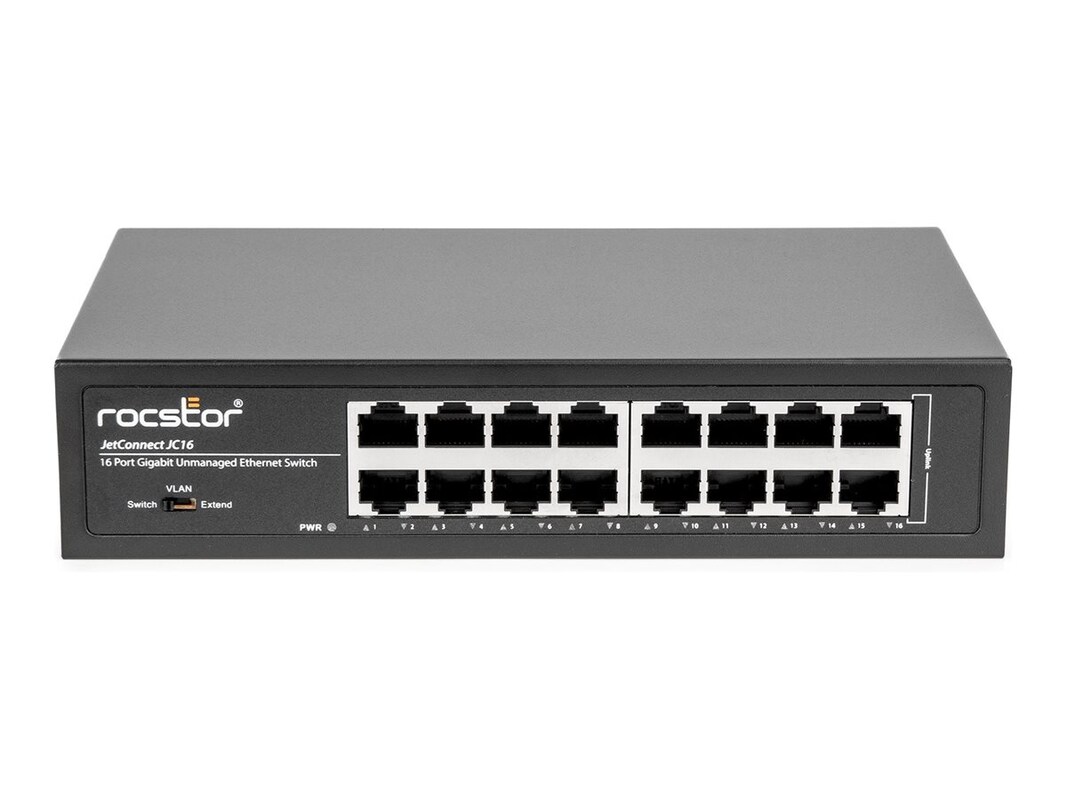 The Rocstor JetConnect JC16 is a versatile desktop switch designed to cater to diverse networking needs. With 16 ports capable of operating at speeds of 10/100/1000 Base-T, this switch ensures reliable and efficient data transmission for both small and medium-sized environments. TAA-compliant and FCC Class A certified, the JC16 adheres to stringent standards for quality and performance, making it a dependable choice for various applications. This desktop switch features an external power adapter with a nominal voltage of AC 120/230 V and a power consumption of 15 W during operation. The compact form factor of 1 rack unit height allows for easy integration into existing setups. With robust support for standards such as IEEE 802.3, IEEE 802.3u, and IEEE 802.3ab, the JetConnect JC16 ensures compatibility across a wide range of devices, enhancing overall network efficiency and connectivity.