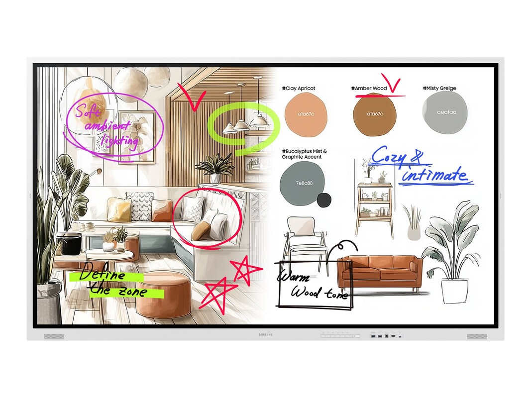 Samsung Flip creates a meeting environment where ideas flow as soon as inspiration strikes. With instant writing on power-up, it works like a true whiteboard keeping discussions stay smooth and uninterrupted. Its intuitive home screen provides quick access to frequently used apps and tools, adapting naturally to any meeting style. Enhanced clarity and fluid interaction make it easier to express and share ideas with confidence. Designed to fit every workspace, the Flip offers rotatable 55" and 65" models for flexible collaboration and slimmer 75" and 85" models with refined proportions that elevate modern meeting spaces. Protected by enterprise-grade Samsung Knox, Flip ensures every collaboration remains secure and reliable.