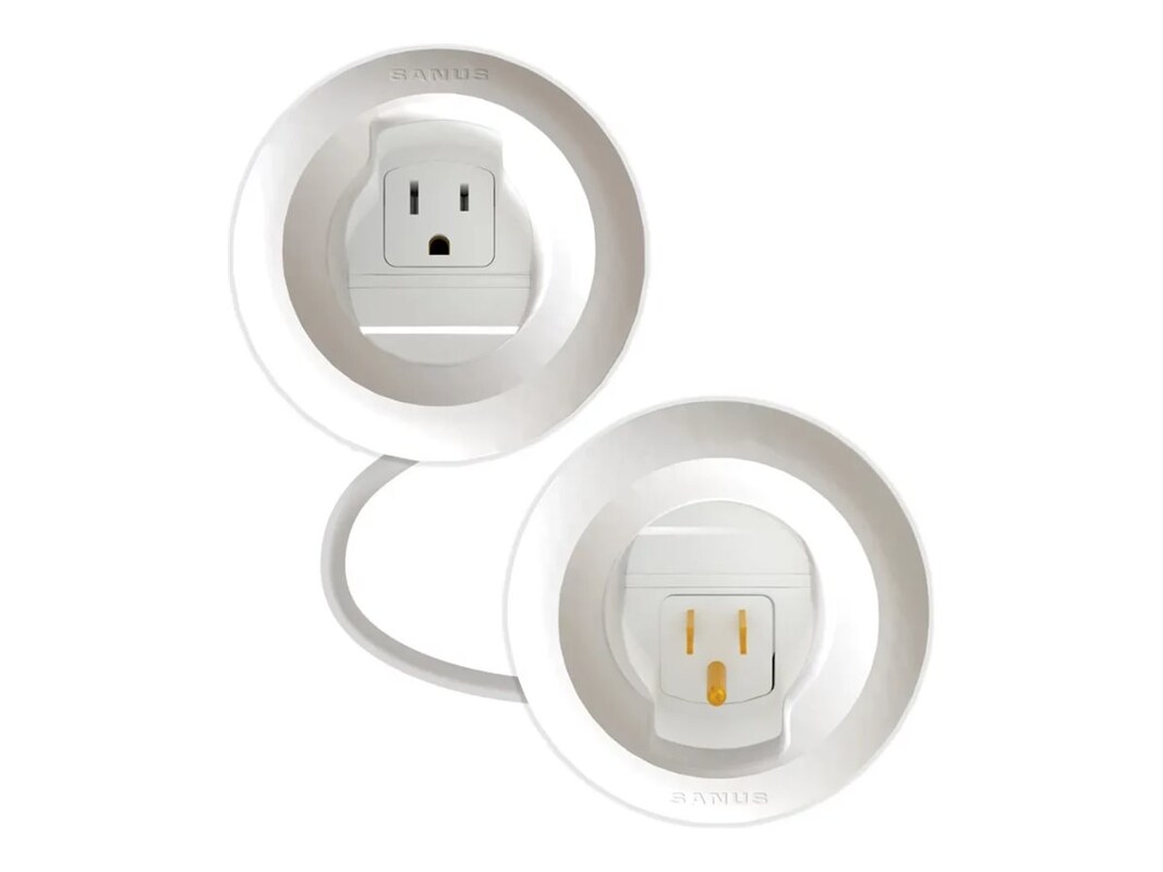 The Sanus cable grommet kit provides a clean and efficient cable management solution for your flat screen TV. This kit includes two grommets, a hole saw, a power cable measuring 1.83 m, and a driver bit, allowing for a seamless installation process. The in-wall-mountable design ensures that cables remain hidden, reducing clutter and enhancing the aesthetic of any room. Made from durable PVC material, this low voltage kit offers reliability and safety for your electronic setups.