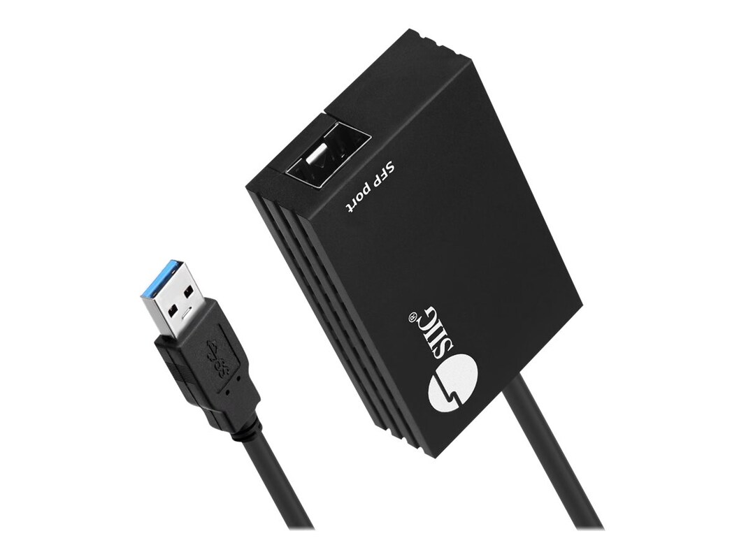Adds a Fiber SFP Gigabit Ethernet connection through a USB 3.0 Type-A port of your Windows or Mac system