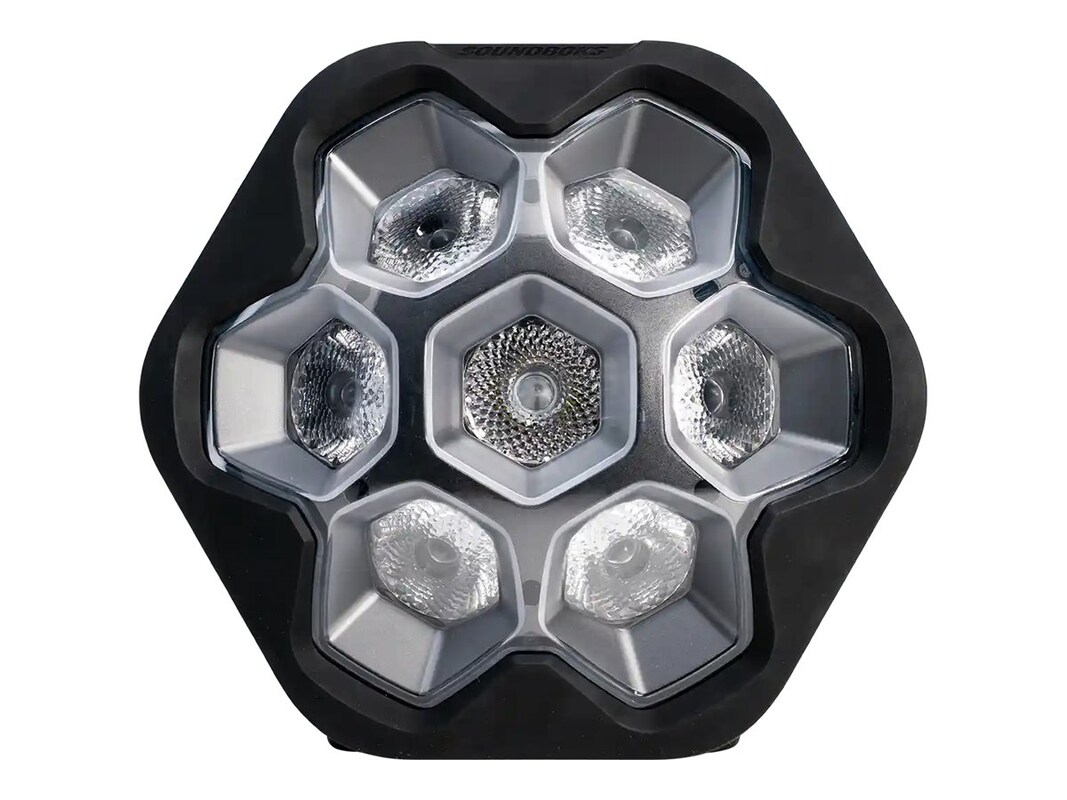 The SoundBoks Lightboks is a portable spot light designed to enhance any party atmosphere. With its RGBW LED light source, it delivers vibrant illumination that can adapt to various moods, whether it's a dance, rave, or chill session. Featuring adjustable brightness and a built-in battery with a capacity of 44.16 Wh, it ensures users have the right lighting for every occasion. The rechargeable battery charges in 2 hours, making it convenient for quick setups and lively gatherings. Its weatherproof design and durable materials provide reliability, while the built-in handle and light weight make it easy to transport and set up anywhere. Bluetooth connectivity via the Soundbooks app allows for seamless control and synchronization, offering a personalized lighting experience for all users.