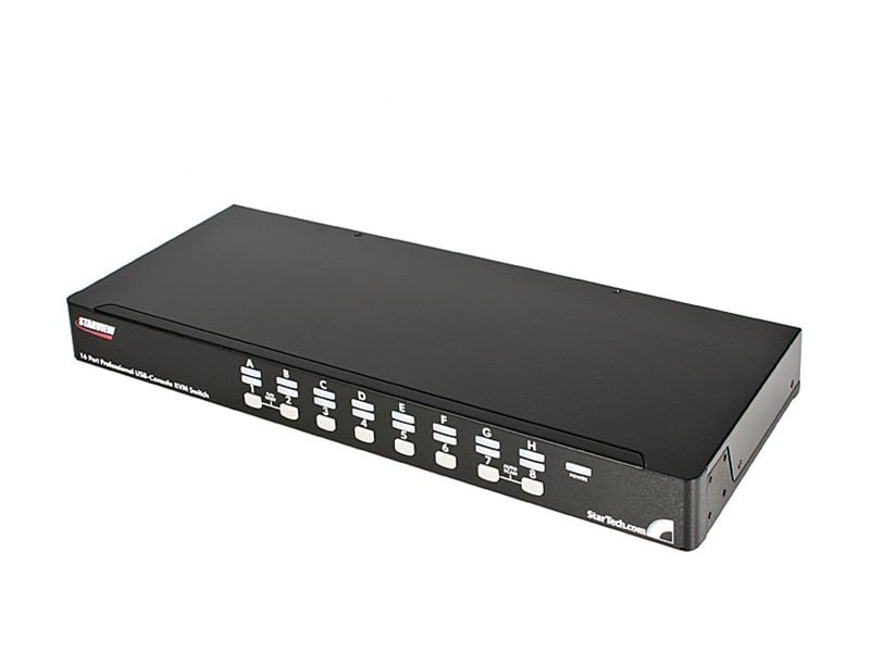 You can manage all of your computers from one location with this StarTech.com KVM switch. This unit will let you connect (16) USB or PS/2 computers using only one USB keyboard, mouse, and monitor. It has convenient pushbutton and hot-key commands which allow for quick and reliable switching between your systems. Both manual and auto scan modes are supported. The slim design needs only 1U of rack height in your cabinet and uses rear cable connections for maximum space efficiency. Multiple units can be cascaded to support up to 136 computers.