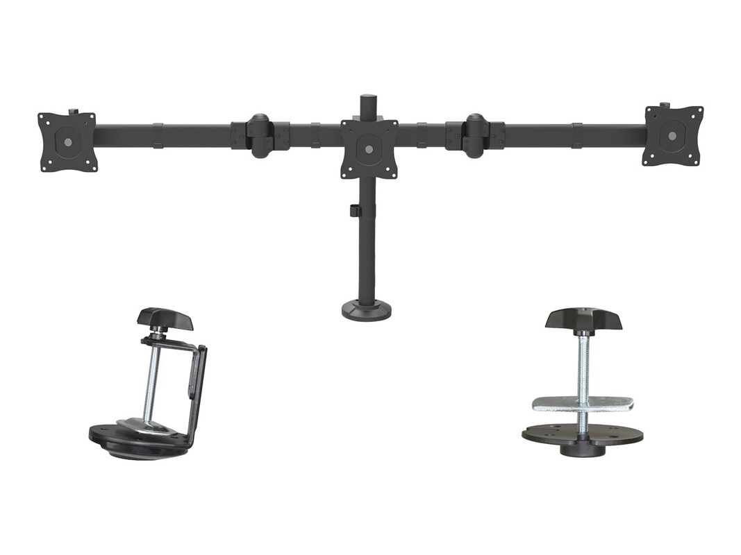 - Steel desk mount triple monitor arm for three VESA Mount monitors up to 24"