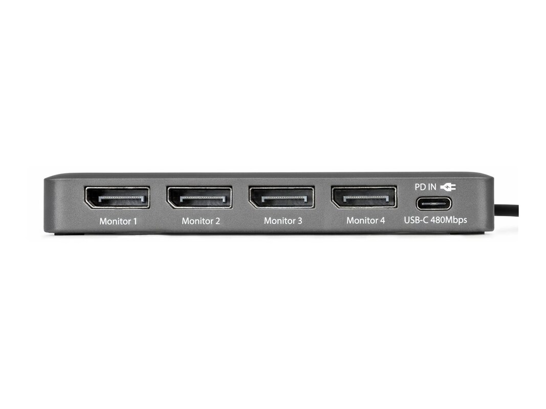 This quad-display USB-C mini-dock expands your visual workspace and streamlines connectivity without sacrificing ports or power. Turn a single USB-C port into a high-performance workstation by connecting up to four 4K 60Hz DisplayPort monitors. Ideal for multitasking across large desktops, even on systems with limited GPU or native video output capabilities. 140W power delivery passthrough charges your laptop, while the USB-A 2.0 port supports essential peripherals like a mouse, keyboard, or wireless dongle. This helps you stay productive with no compromise on available ports. DisplayLink drivers install automatically on most Windows and ChromeOS systems, reducing setup time and simplifying large scale IT deployments. For macOS devices, a manual driver installation is required. Designed for IT, finance, engineering, and education use, this compact, travel-ready workspace adapter enables easy transitions between home, office, and on-the-go setups. Its durable design and broad compatibility make it the perfect choice for professionals who require consistent performance wherever they work.