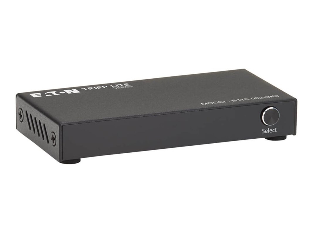 The B119-002-8K6 simplifies switching with three different modes to fit your application. You can use the push button on the unit to switch manually between HDMI sources or the included remote to control the inputs at a distance. You can also activate automatic port switching, which enables the most recently used source to be displayed automatically. The B119-002-8K6 also features an IR receiver on/off function.