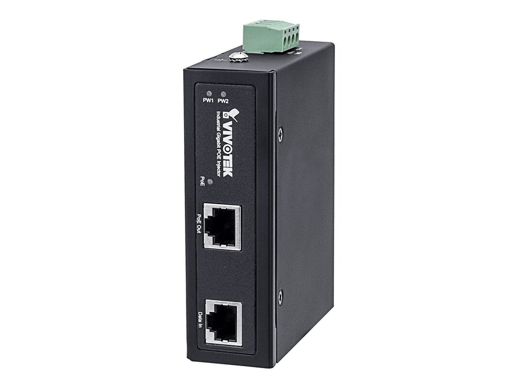 The Vivotek AW-IHT-0100 PoE injector is engineered to meet the demands of power and data transmission for network devices in challenging environments. With its ability to operate in a wide temperature range and high humidity, it ensures reliable performance in outdoor or industrial settings. This rugged, wall and DIN rail mountable device supports Gigabit LAN connectivity, providing high-speed data transmission to connected devices. It is compliant with multiple IEEE standards, including 802.3af and 802.3at for PoE+, ensuring compatibility and efficient power management for devices such as IP cameras and wireless access points. Additionally, the injector is equipped with safety features like overcurrent and short-circuit protection, enhancing the operational safety of connected equipment. Its external form factor, combined with LED indicators, offers convenient installation and monitoring, making it a versatile solution for a wide range of applications.