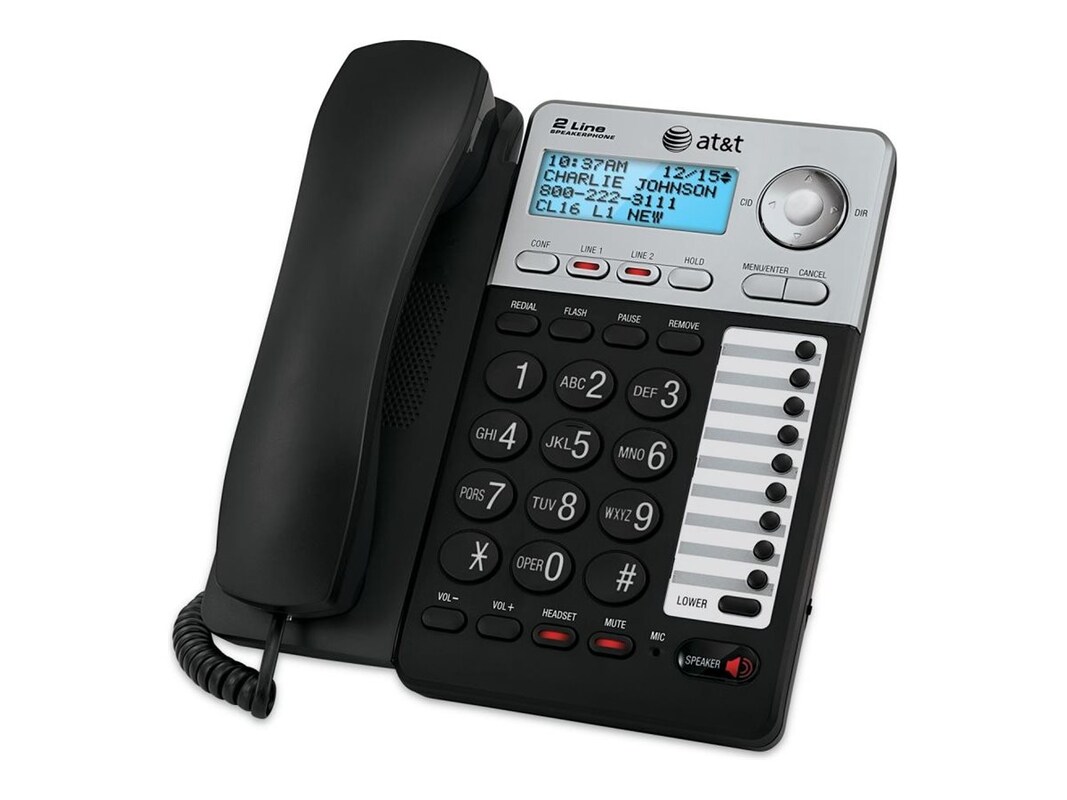 The AT&T ML17929 corded phone from TeleDynamics is a versatile communication tool designed to meet the needs of both home and office environments. Featuring a backlit monochrome LCD display, this device ensures that caller information is visible even in low light, enhancing usability at any time of the day. Its 2-line operation capability allows for efficient multitasking, enabling users to manage calls more effectively. With additional functions such as redial, call hold, and call mute, alongside a 3-way conference call capability, it offers a range of features to facilitate seamless communication. The phone also supports a 100 names and numbers directory, making it easier to keep track of contacts. Moreover, the inclusion of a speakerphone and a headset jack with support for two devices offers flexibility in how calls are taken, ensuring clear and convenient conversations. Whether placed on a table-top or mounted on the wall, the AT&T ML17929 is equipped to blend into any setting while providing reliable performance.