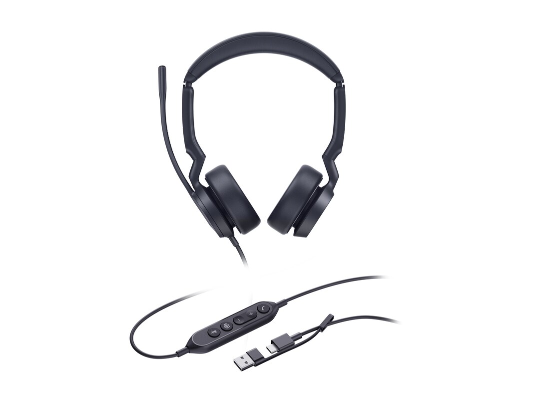 The Yealink UH44 Dual headset is designed for effective communication, featuring AI noise cancellation that ensures clear audio quality. With a frequency response range of 20 - 20,000 Hz, this headset delivers high fidelity sound for both multimedia and talk modes. The comfortable on-ear design with boom microphone offers customizable microphone mute options and volume control, allowing users to focus on conversations without distractions. The headset's 1.5 m cable includes a USB-C and USB-A connection, facilitating easy integration with various devices while complying with Plug-and-Play standards for user-friendly setup.